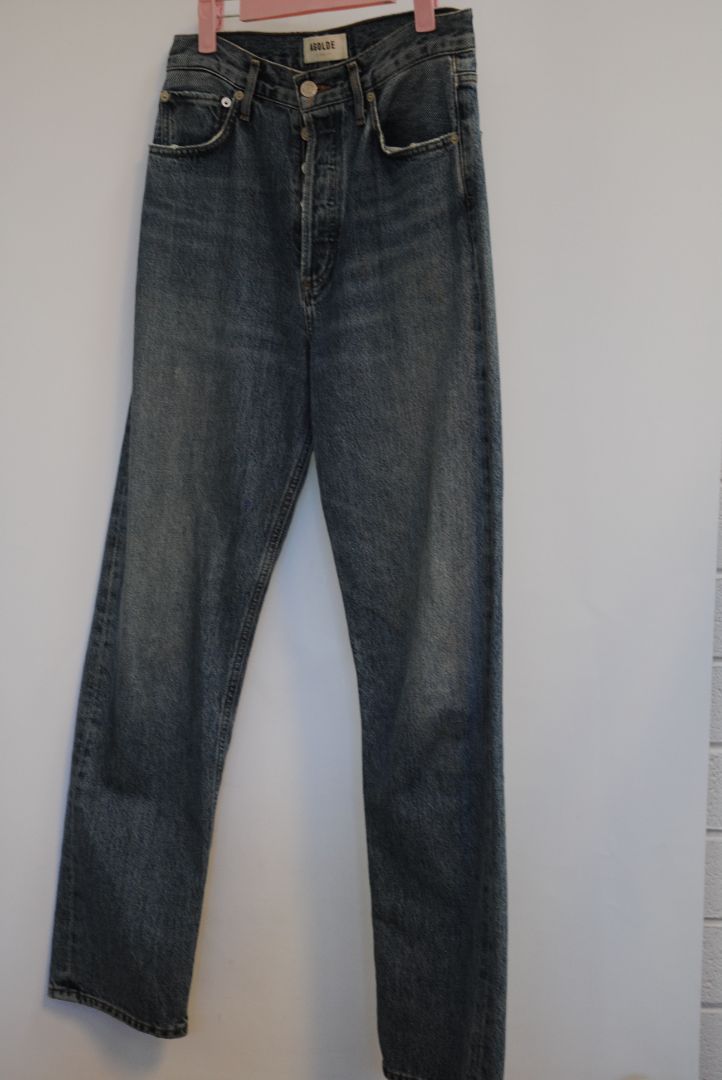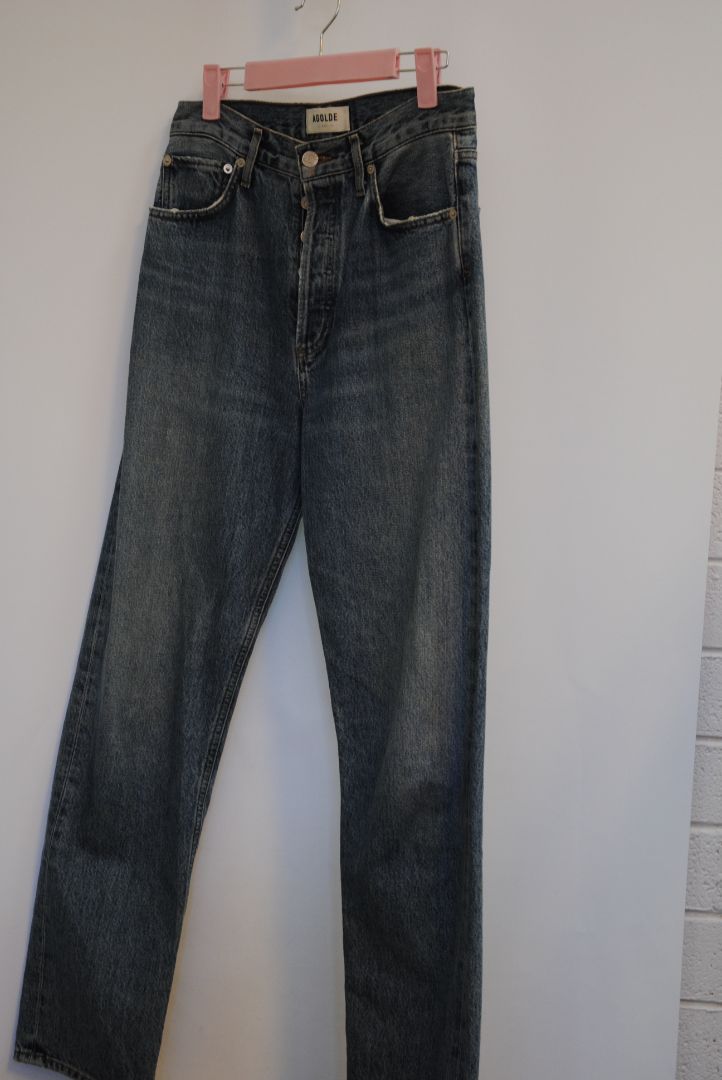 AGOLDE 90s jeans, vintage fit denim, AGOLDE straight leg jeans, non-stretch high rise denim, designer jeans resale, medium wash AGOLDE, AGOLDE size 27, AGOLDE relaxed fit, LA denim brand