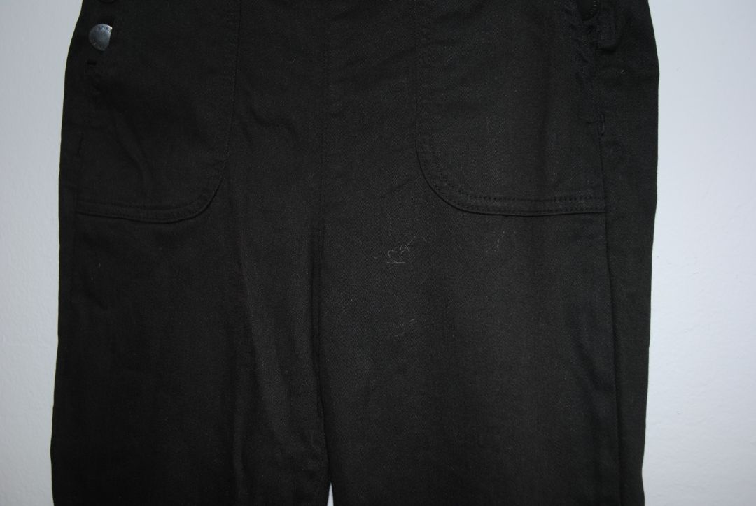 - Style: High-rise pants featuring side-button detailing (likely three buttons), front patch pockets, tailored waist, and tapered or slim leg cut.