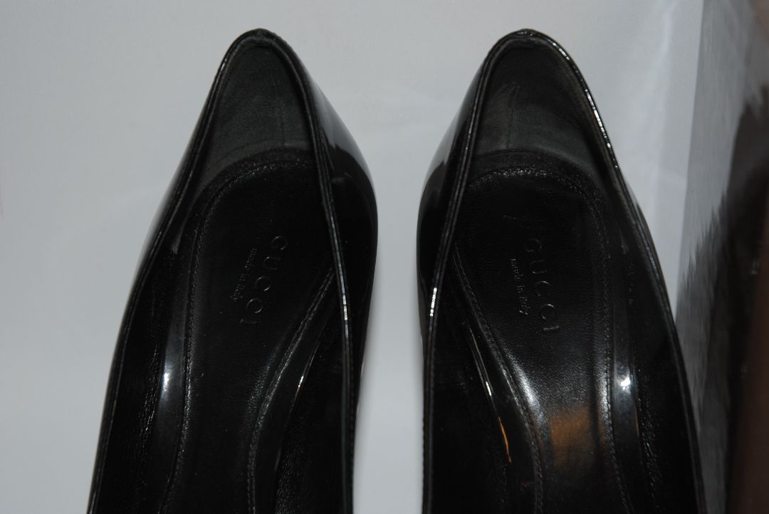 - Meta Description: Shop these elegant Gucci black patent leather peep-toe heels with iconic tortoise horsebit detailing. Made in Italy. Luxury women’s heels for formal occasions.