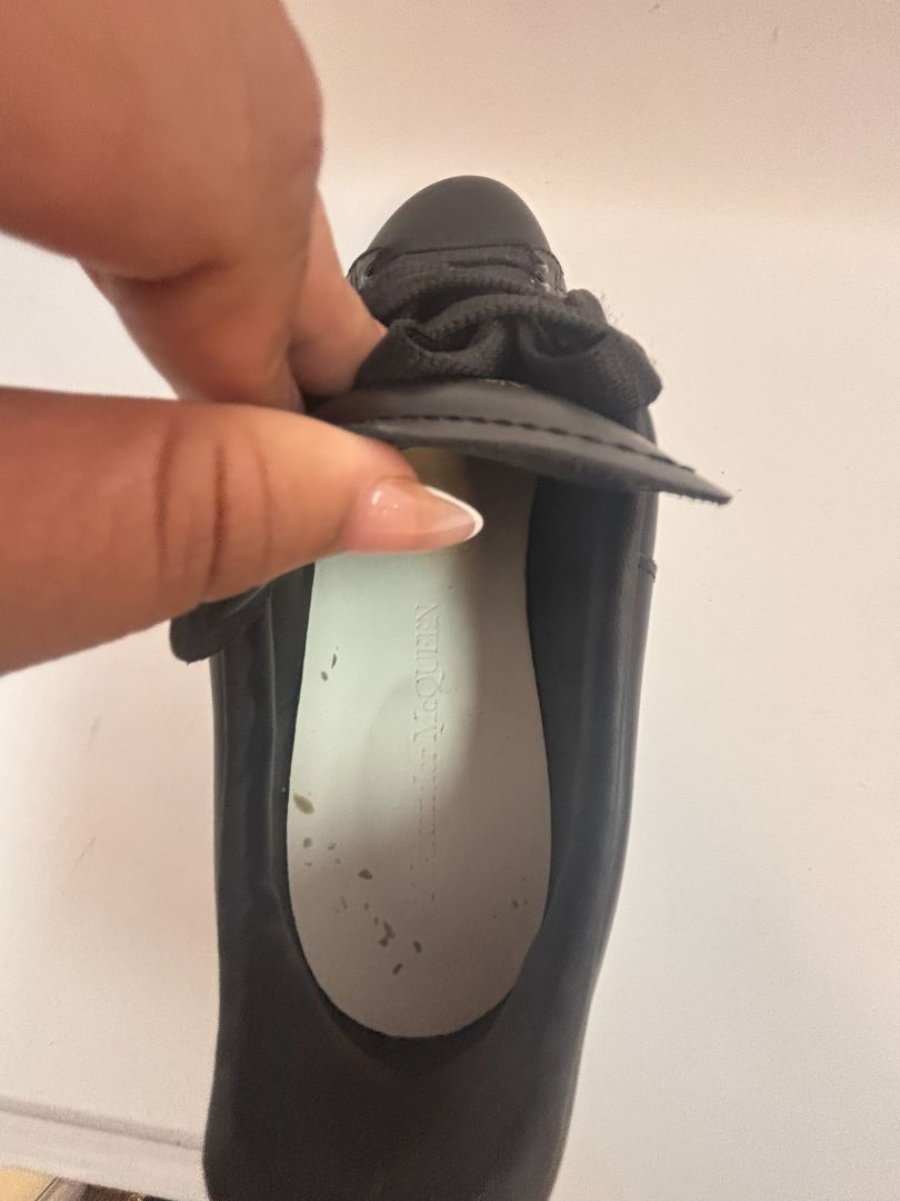 • Gold embossed “Alexander McQueen” logo on tongue and heel tab