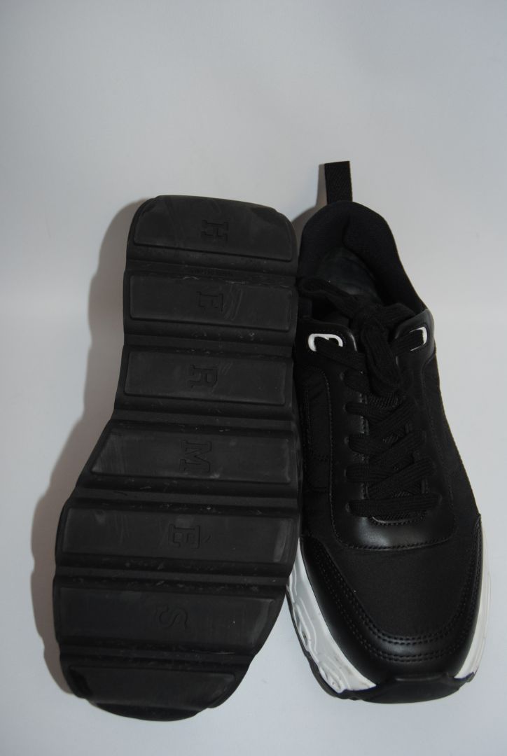 black and white Hermès Bouncing Sneaker, Heel Height: 1.5 in Platform: 1.25 in Fit: True to size (standard men’s sizing; this appears to be ~EU 41–43) Weight: Lightweight EVA sole (typical of Bouncing/Trail line)