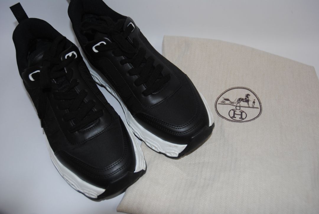 Hermès Bouncing Sneaker – Black Calfskin with White Sculpted Sole