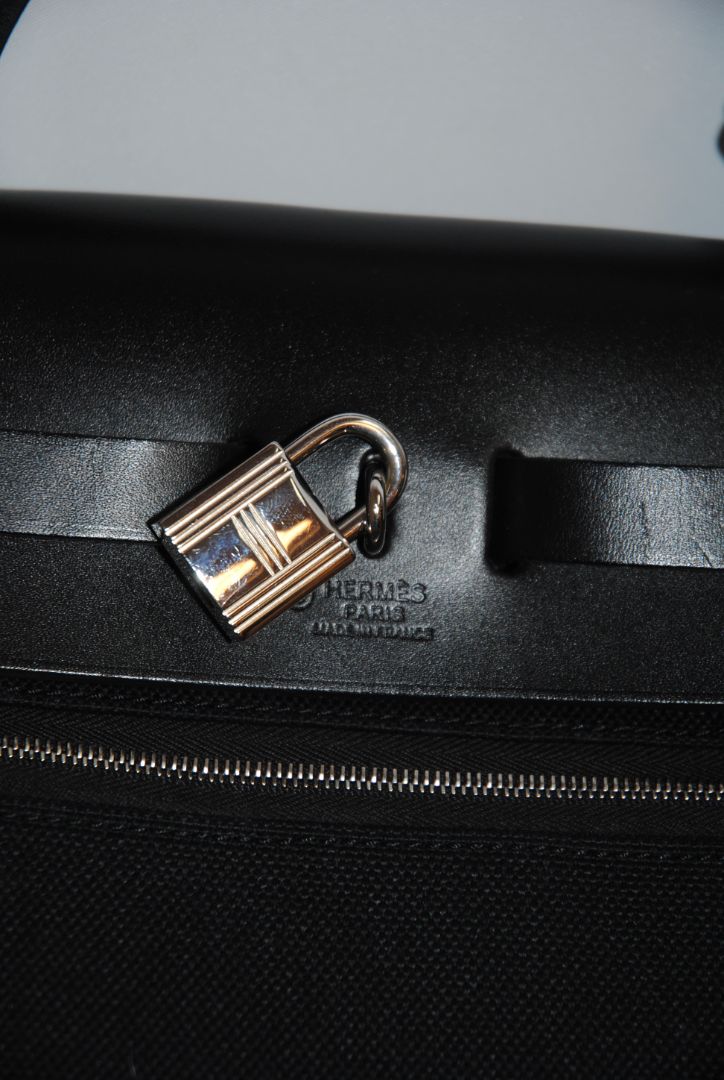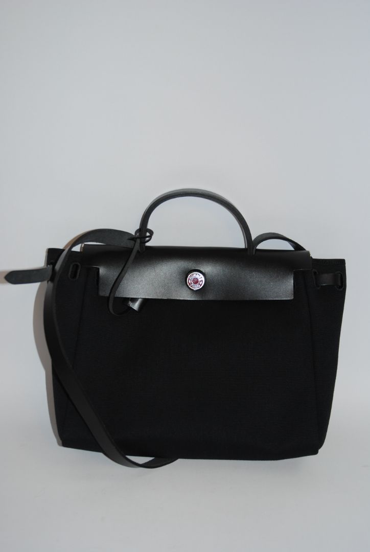 Black Canvas & Vache Hunter Leather with Palladium Hardware Hermes Hermès Herbag Zip 31 Retourne, Length: 12.25 in (31 cm) Height: 10 in (25 cm) Depth: 4.25 in (11 cm) Handle Drop: 2 in Strap Drop: Adjustable, up to 18 in (crossbody or shoulder)