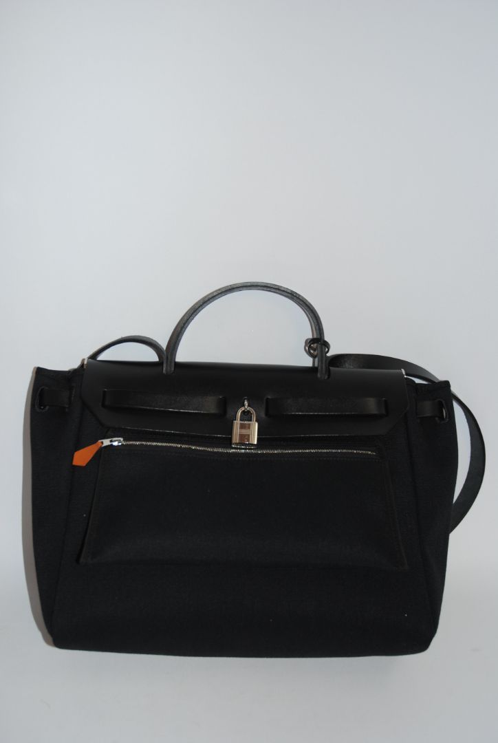 Hermès Herbag Zip 31 Retourne – Black Canvas & Vache Hunter Leather with Palladium Hardware