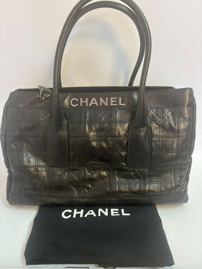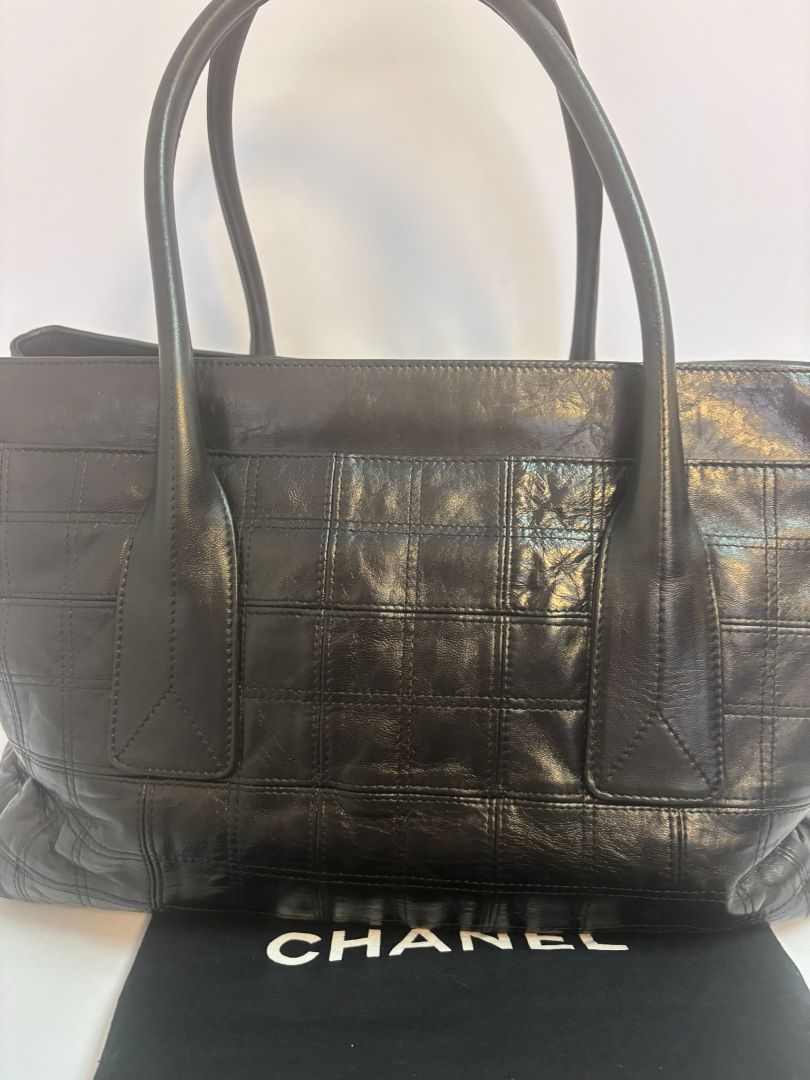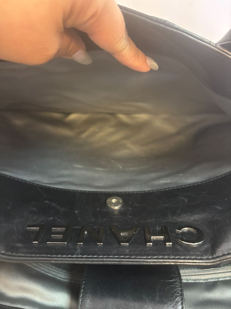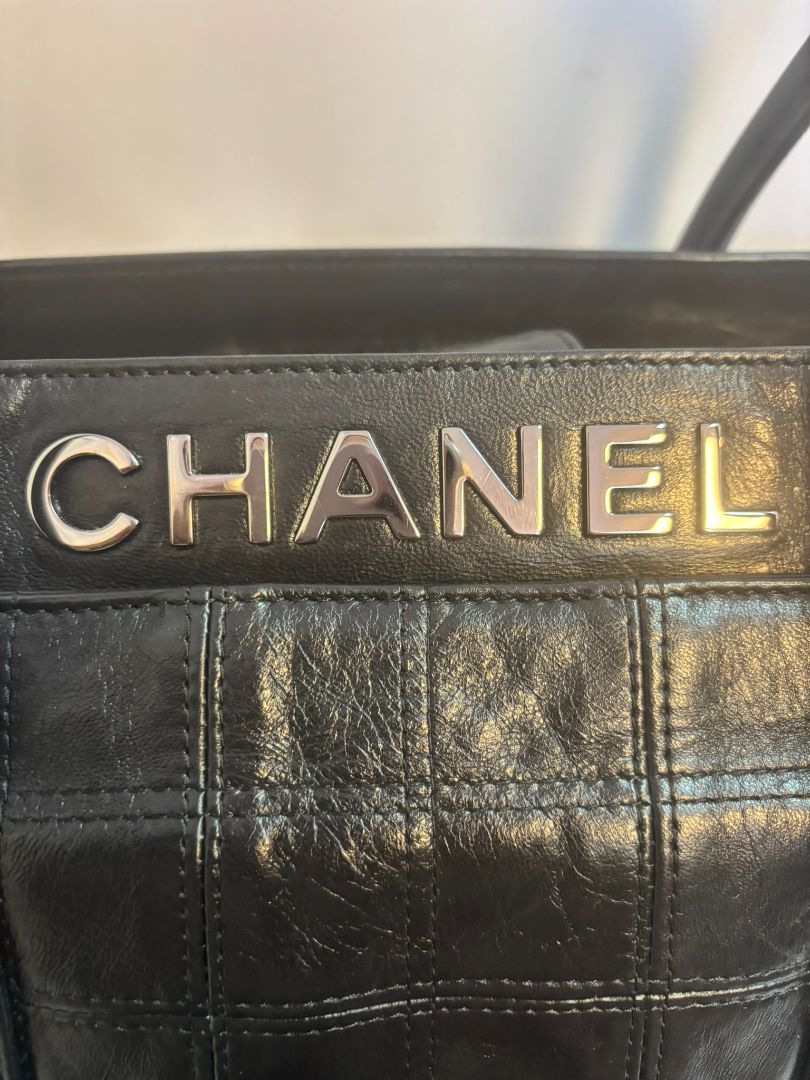 Chanel tote, vintage Chanel bag, black quilted Chanel, Chanel logo tote, designer handbag, luxury resale, archival Chanel, Chanel 2000s bag, Chanel shopper, Luxe by Julianna’s