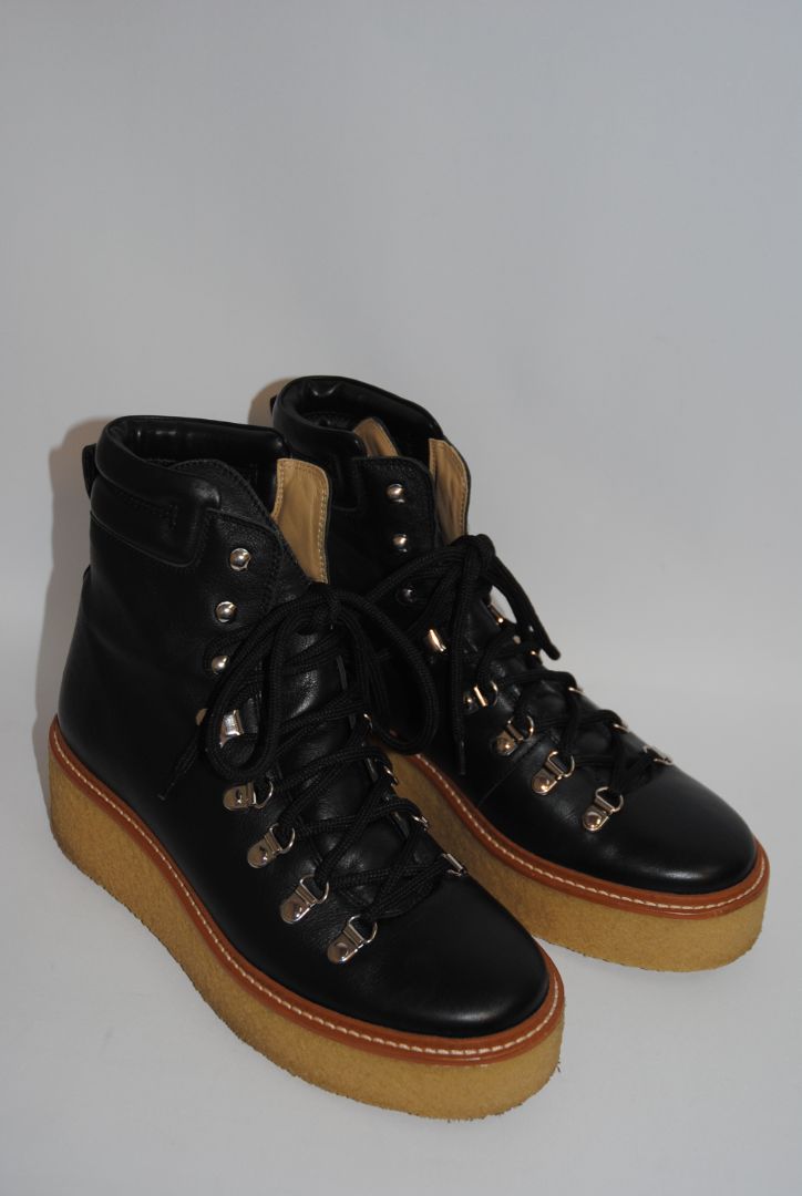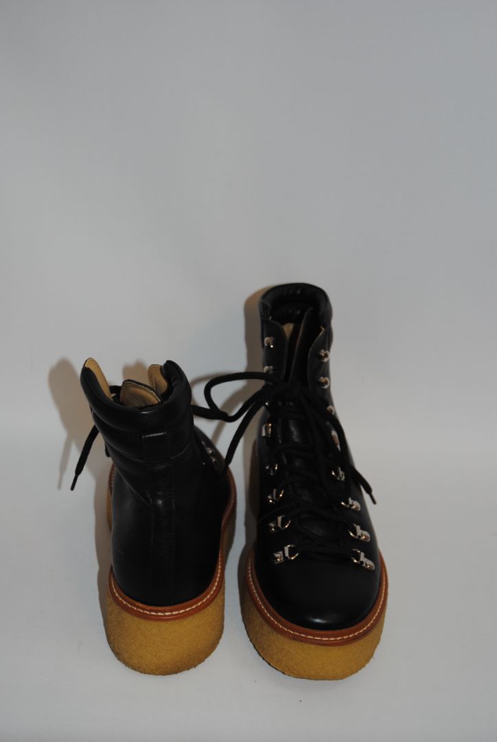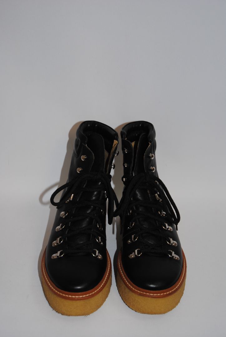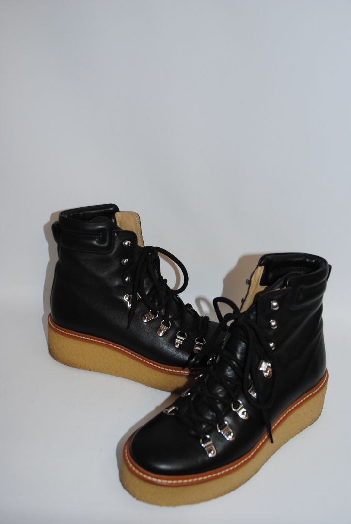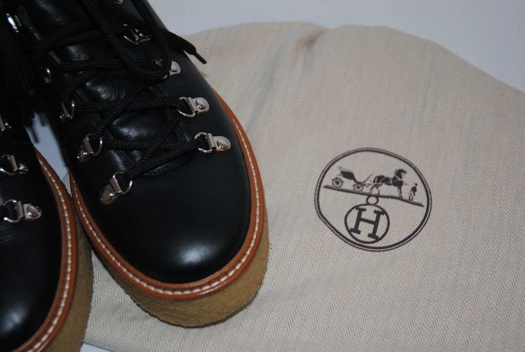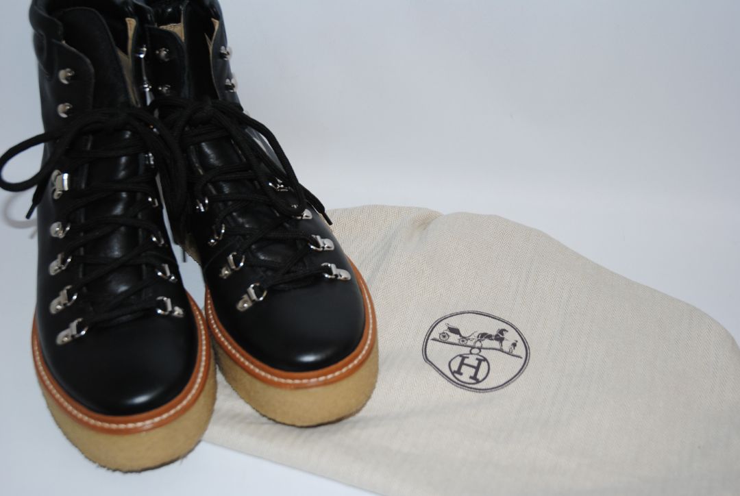 Hermès Mountain Lace-Up Boots – Black Calfskin Leather with Crepe Sole