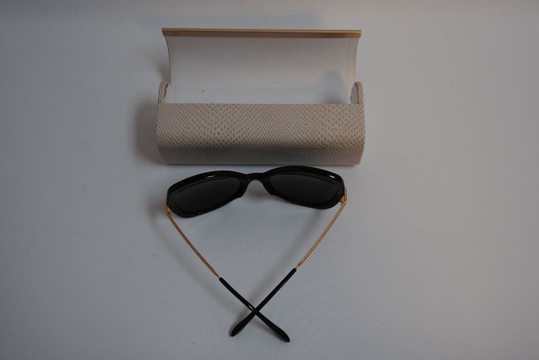 Title: Jimmy Choo Oversized Black Sunglasses with Case – Gold Detail & Smoke Lenses