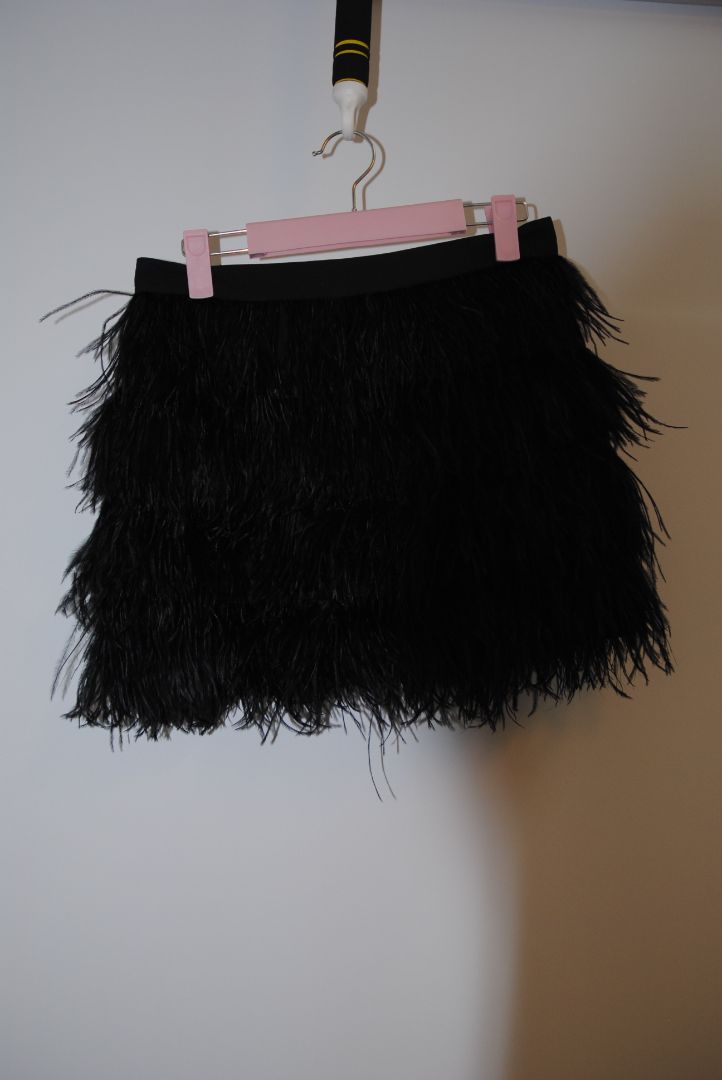 juicy couture, feather skirt, black mini skirt, glam fashion, partywear, Y2K inspired, juicy skirt, statement skirt, fringe mini skirt