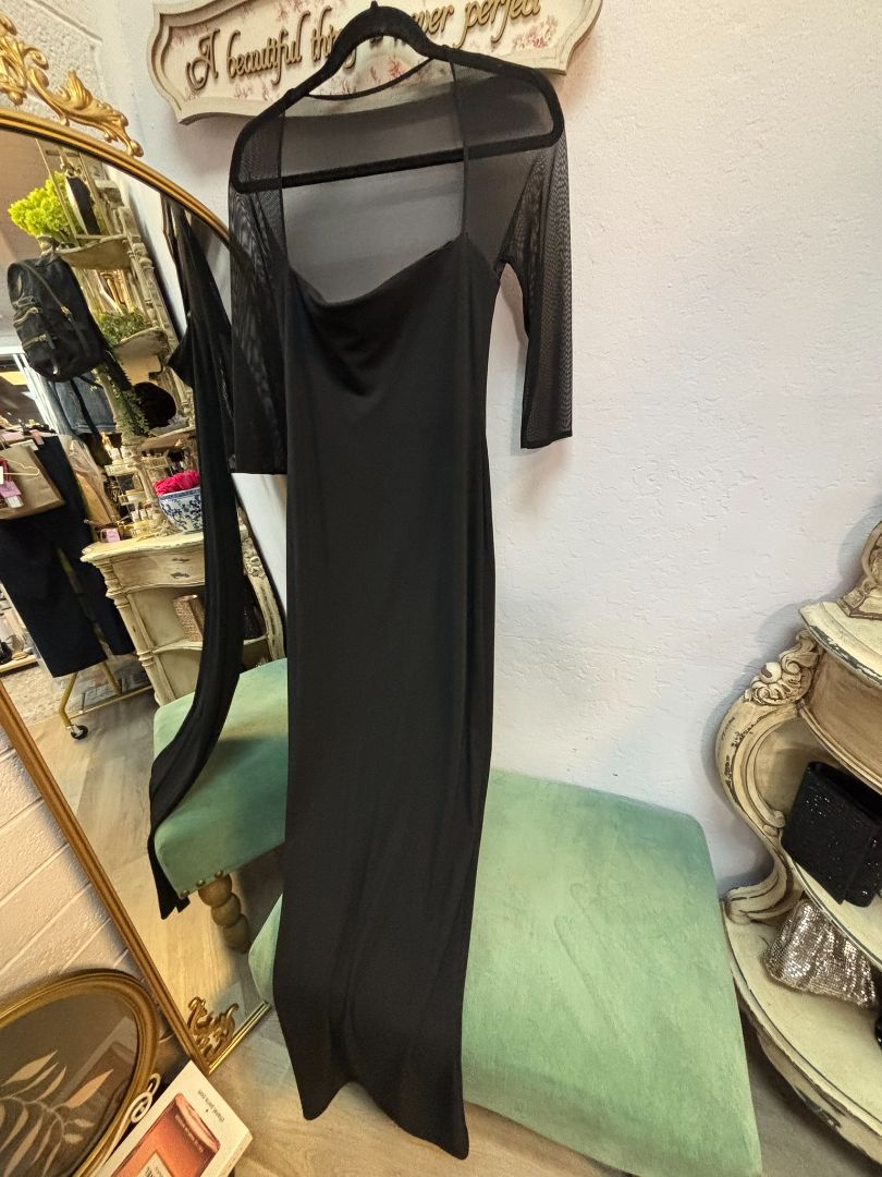 black Laundry by Shelli Segal sheer top long sleeve gown, M