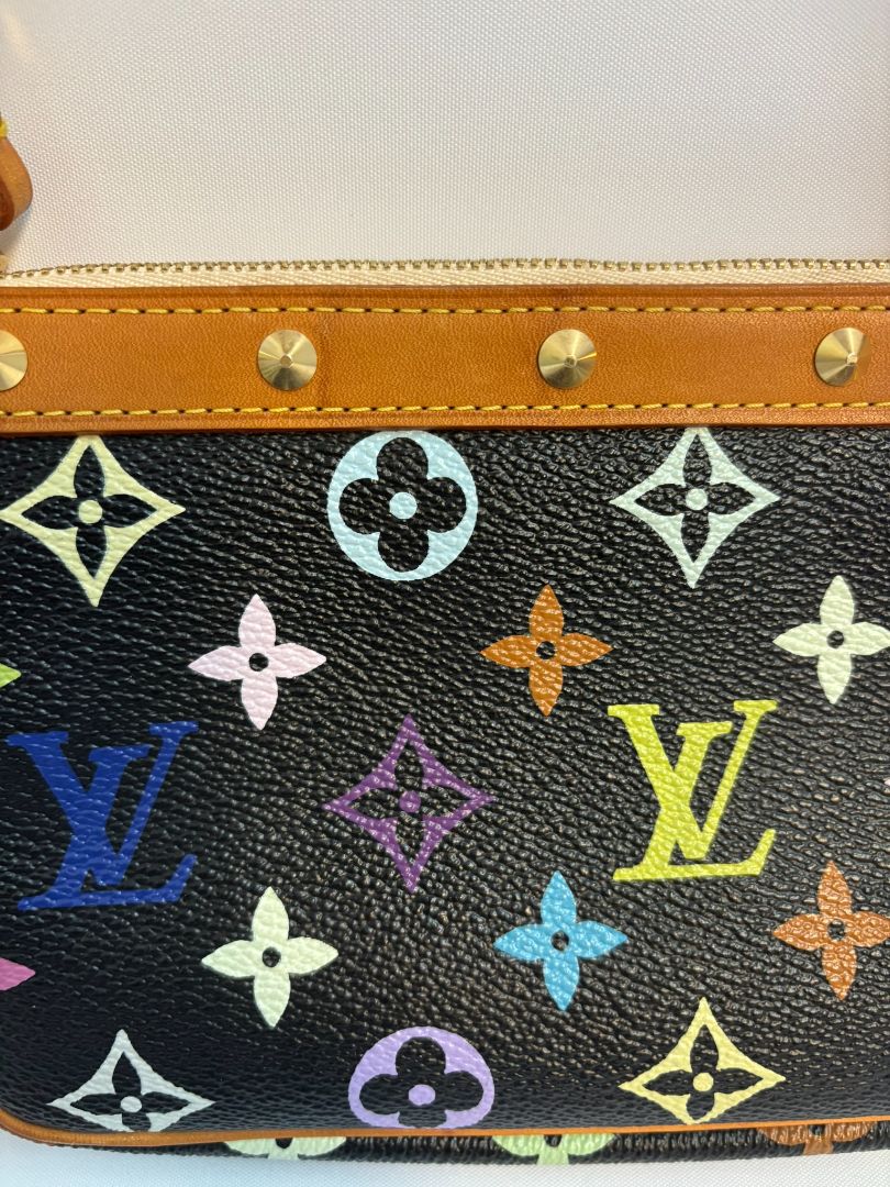 black Louis Vuitton x Takashi Murakami Takashi Murakami vintage collection, 8.75 x 5 x1.5 13 in around strap