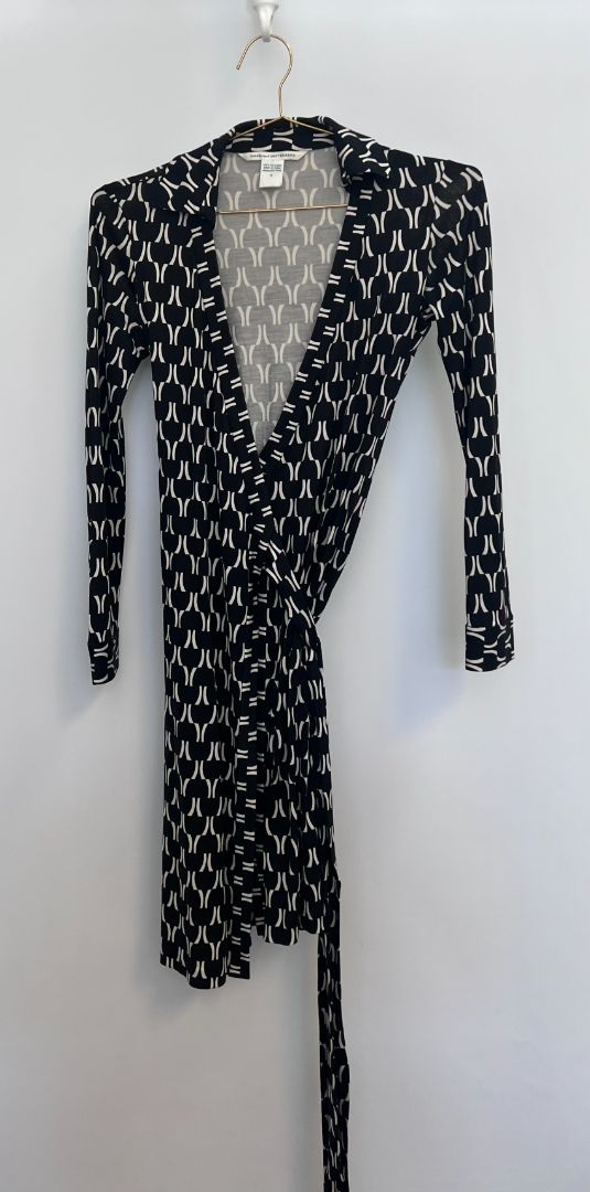 Diane von Furstenberg black multi wrap dress 0, in good condition.