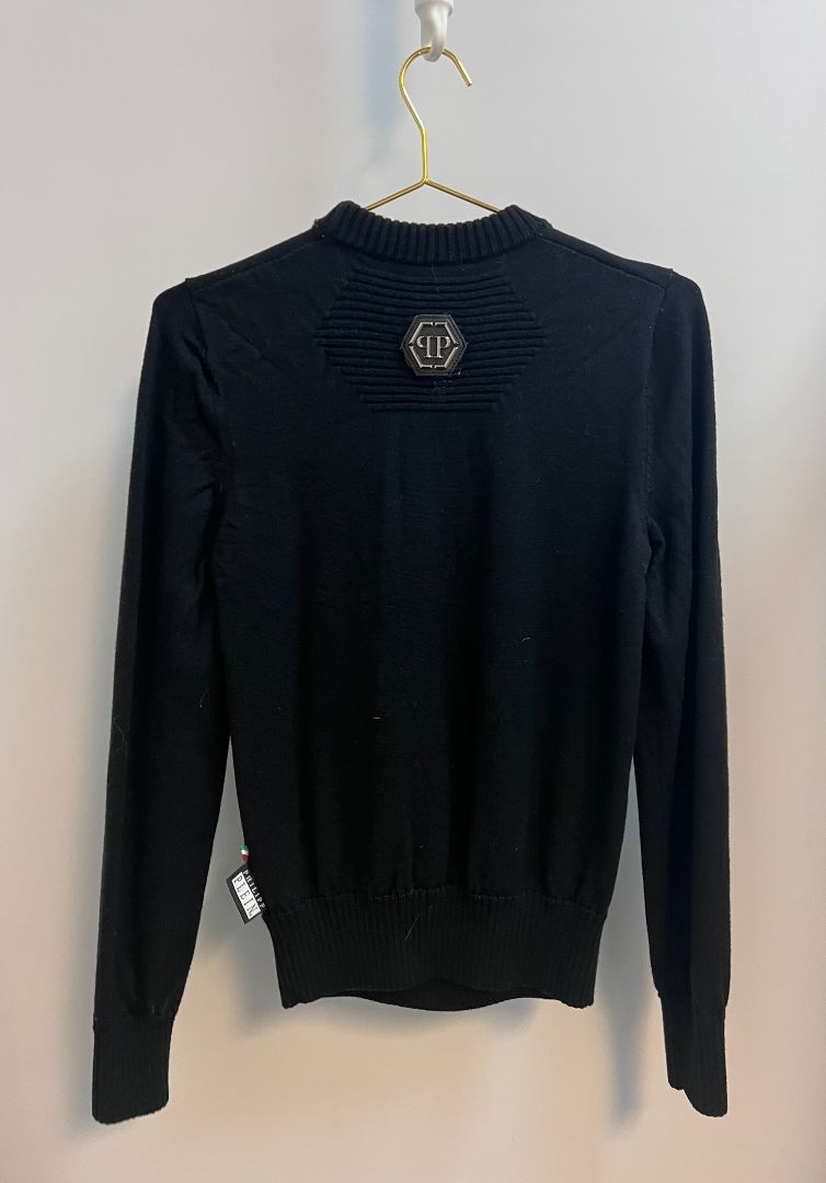 Philipp Plein S black long sleeve sweater with skull design