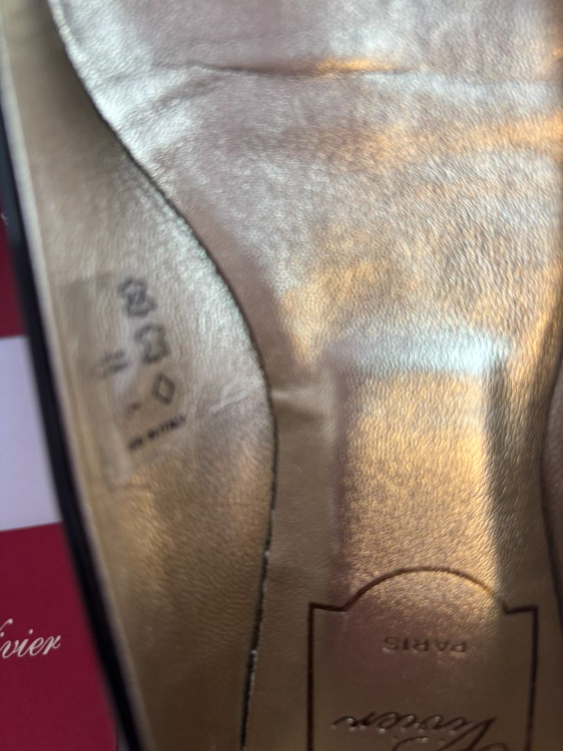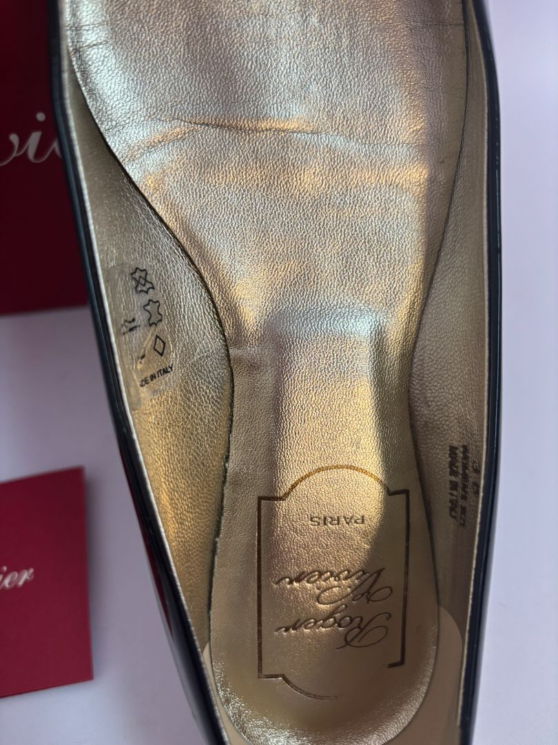 black patent Roger Vivier Patent Leather Flats, DIMENSIONS (Size EU 36.5) Heel Height: 0.5 in (approx. 12 mm) Insole Length: ~9.25 in Width: Standard Size: EU 36.5 / US 6.5