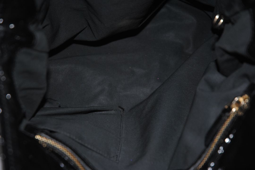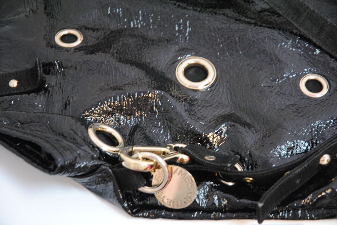 Stella McCartney Grommet Patent Eco Tote – Oversized Black Crinkled Vegan Leather