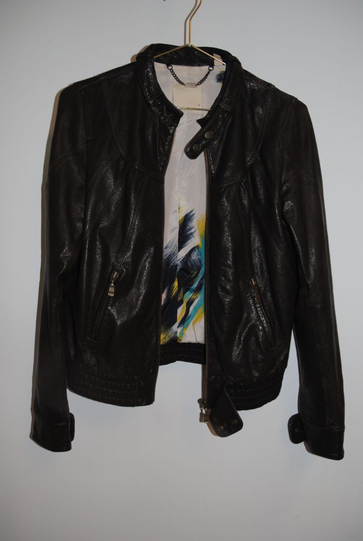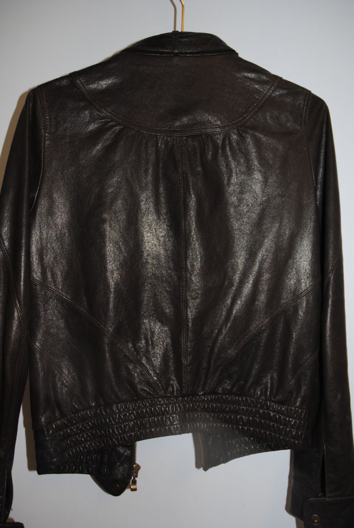 - Meta Description: Shop this sleek Ted Baker leather jacket featuring a moto-inspired silhouette, snap collar, and satin lining. Size 2 (US 6), black leather outerwear.