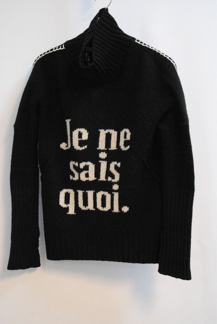 Zadig and Voltaire sweater, slogan turtleneck, Je ne sais quoi sweater, French girl knitwear, Zadig & Voltaire black sweater, Parisian chic sweater, graphic wool sweater, luxury statement knit