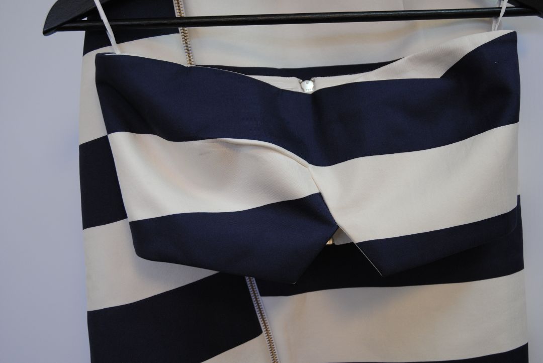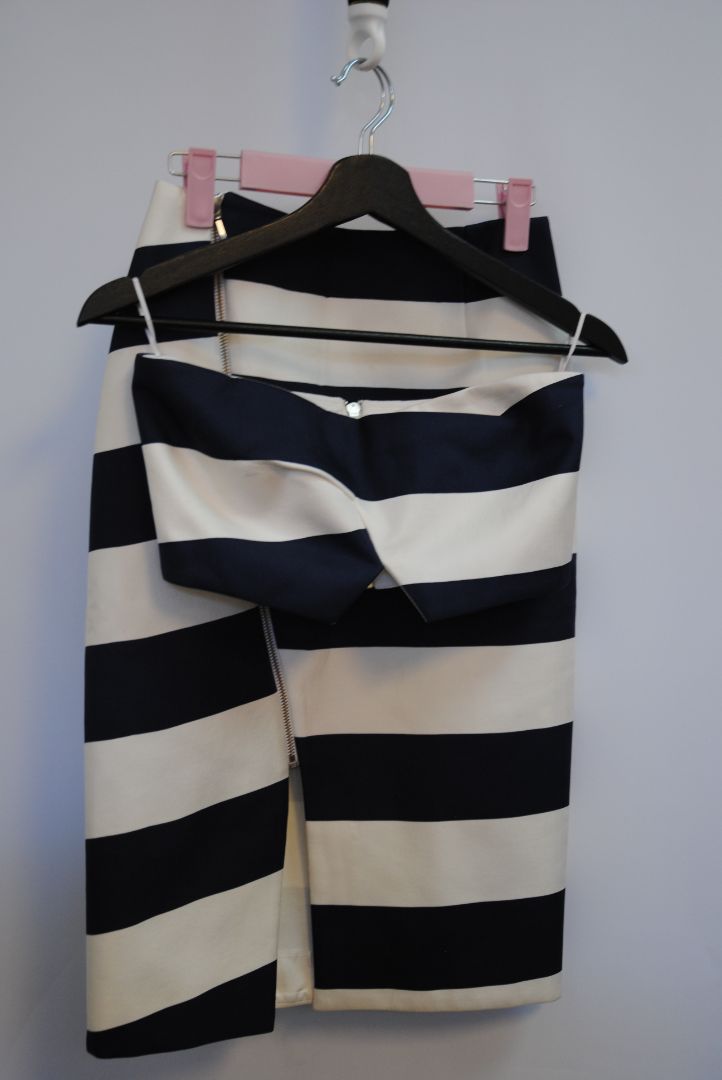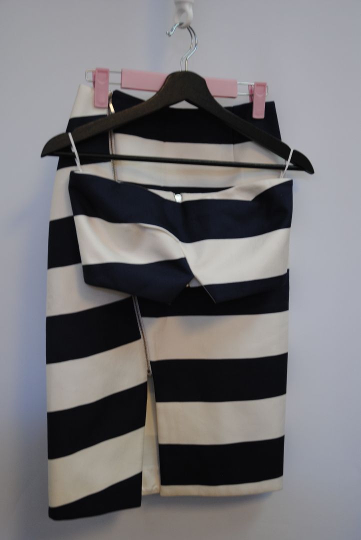 Nicholas two piece set, striped matching set, navy ivory crop top skirt, designer coord set, structured summer outfit, Nicholas Australia, nautical stripe skirt set, high fashion two-piece, editorial style set