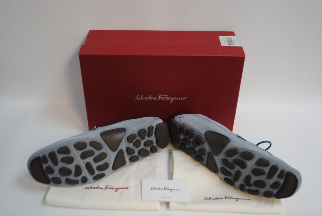 - Keywords: Salvatore Ferragamo loafers, Ferragamo driving shoes, Salamanca suede loafers, Italian luxury moccasins, Ferragamo blue suede shoes, designer men’s loafers