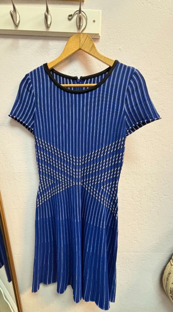 blue white and black St. John knit dress, 2
