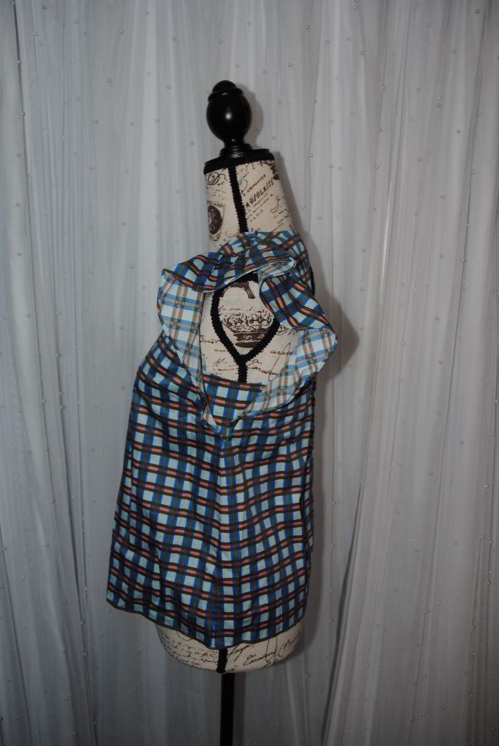 blue/green/pink Kate Spade cotton checked flutter sleeve blouse, XXS