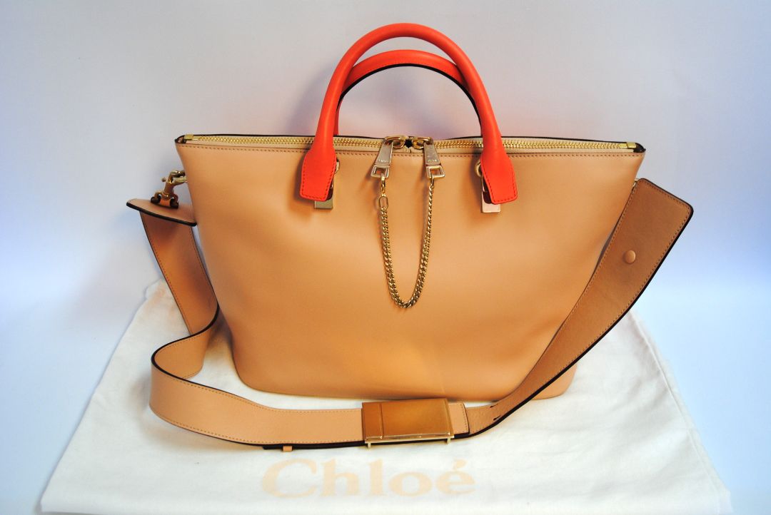 Chloé blush tote, Chloé leather colorblock handbag, Chloé medium shoulder bag, designer pink tote bag, authentic Chloé resale, Chloé pink coral tote, minimalist luxury purse, French leather tote, preloved Chloé bag