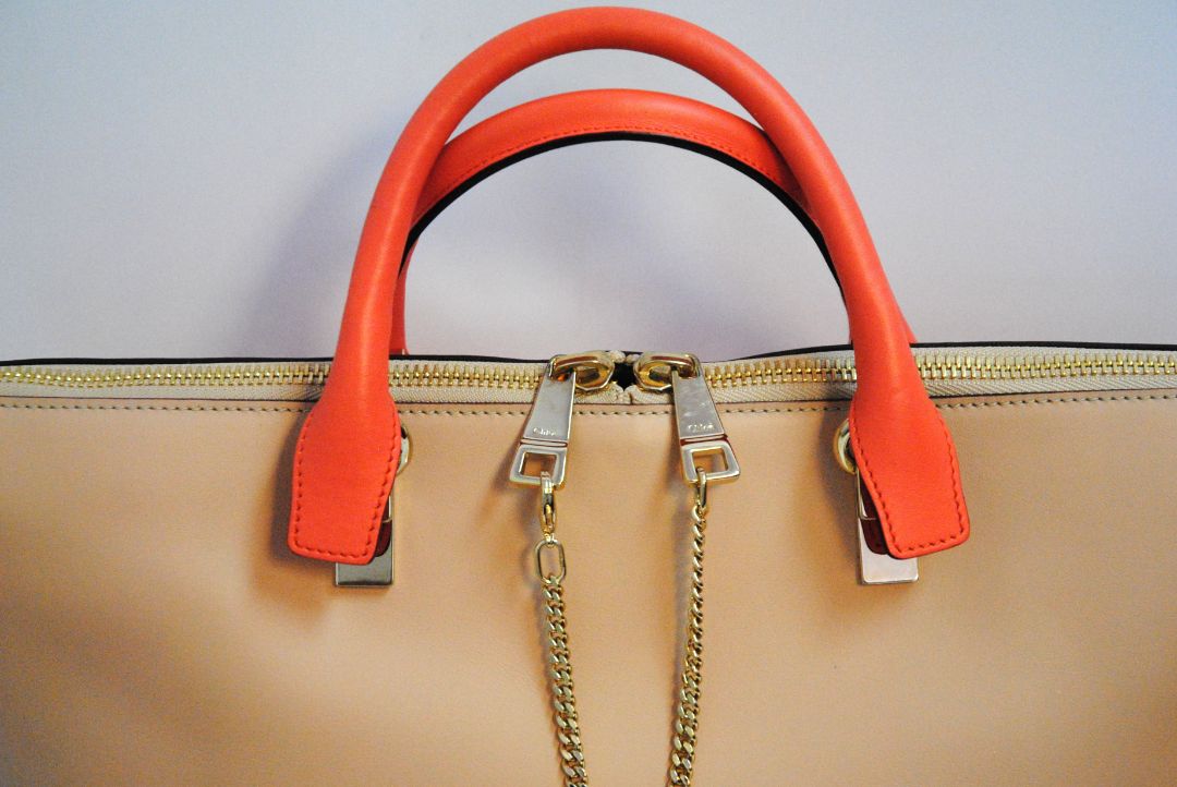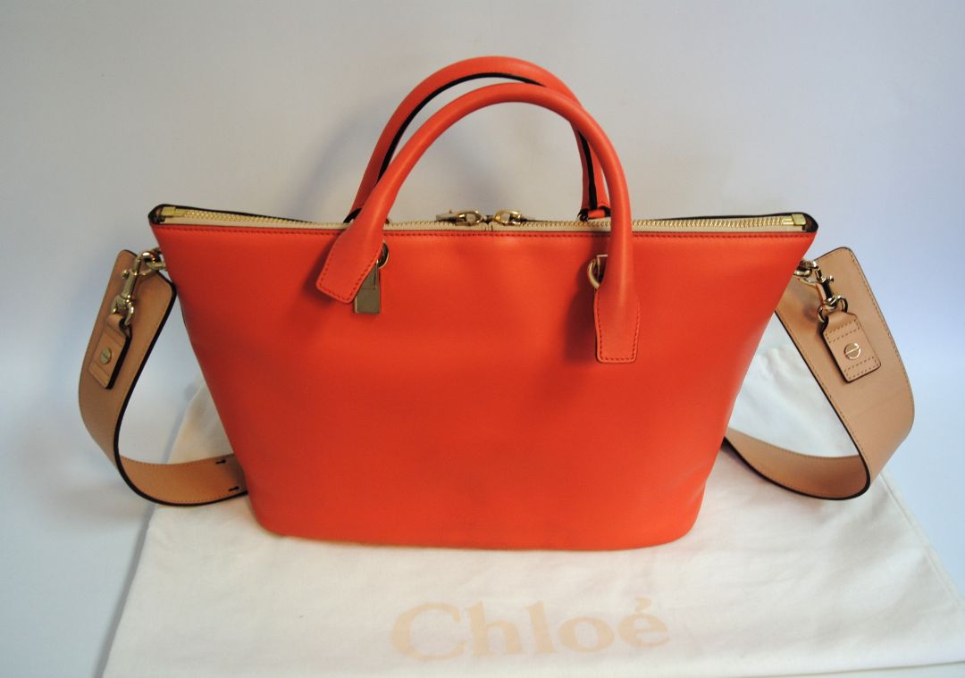 Chloé Medium Colorblock Leather Tote – Blush & Coral