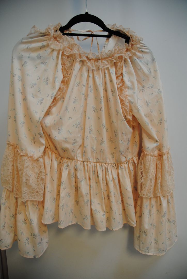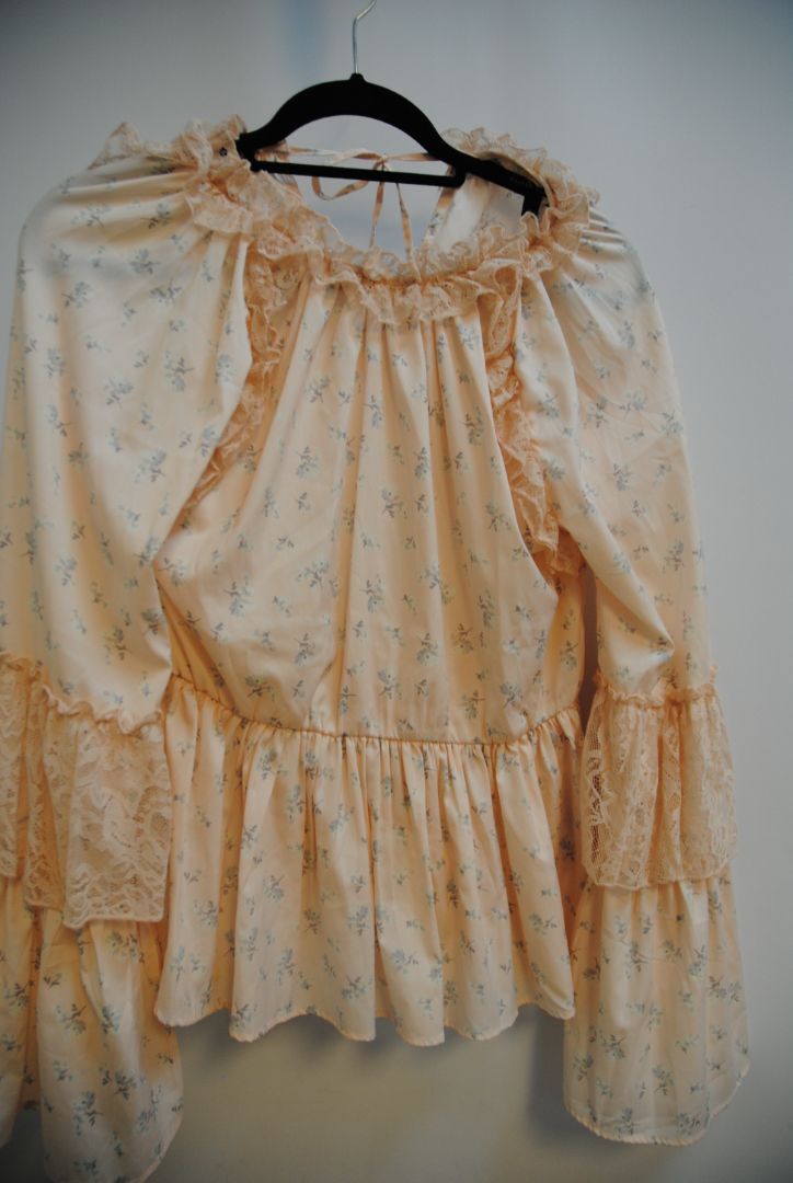 Walter Baker blouse, blush lace top, floral peasant blouse, romantic style shirt, ruffle top, tie front blouse, long sleeve designer top, Walter Baker resale