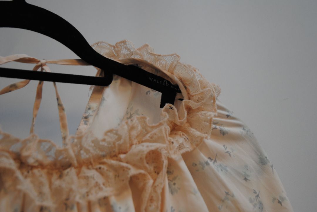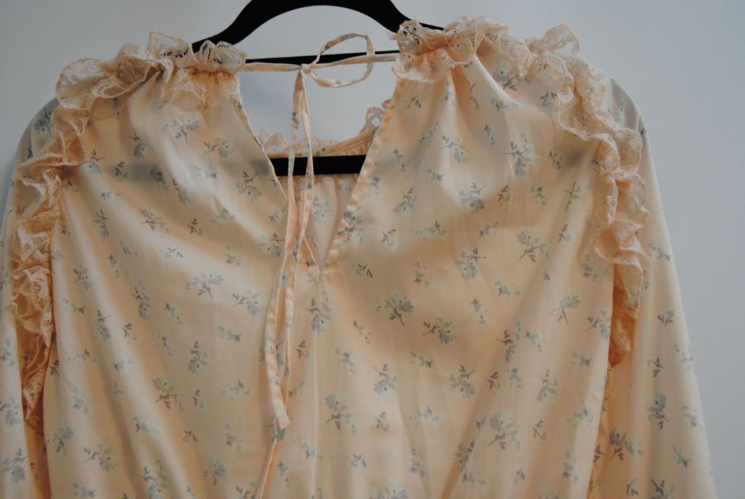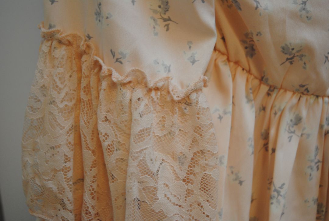 - Material: Lightweight chiffon-style blend with lace (exact fabric not labeled)