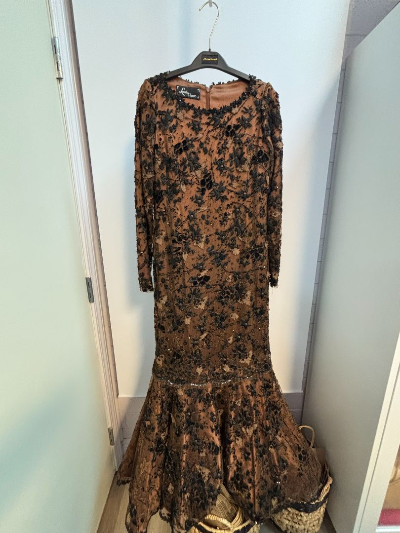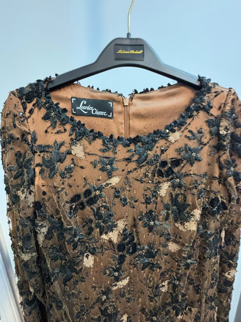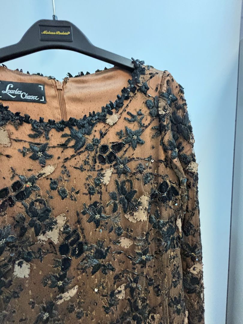 brown Lourdes Chavez beaded gown, S