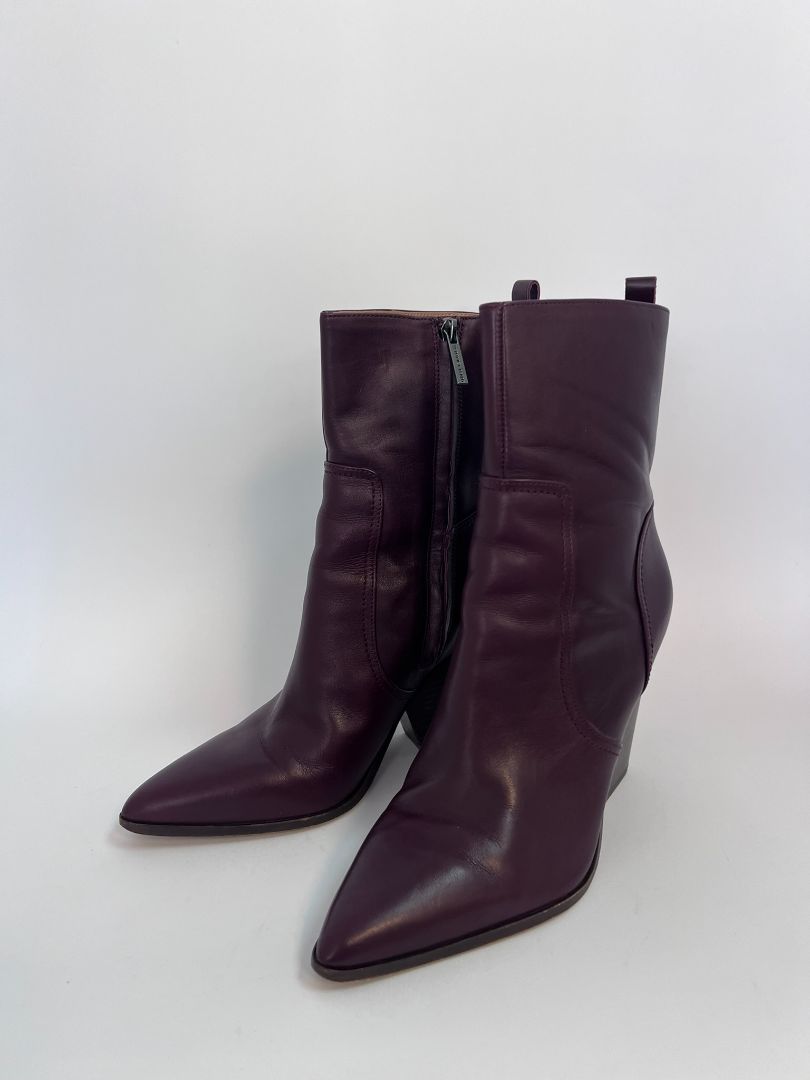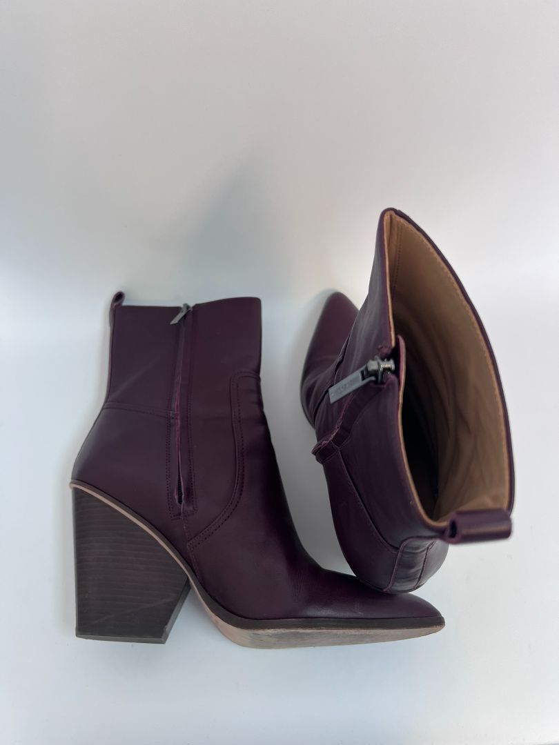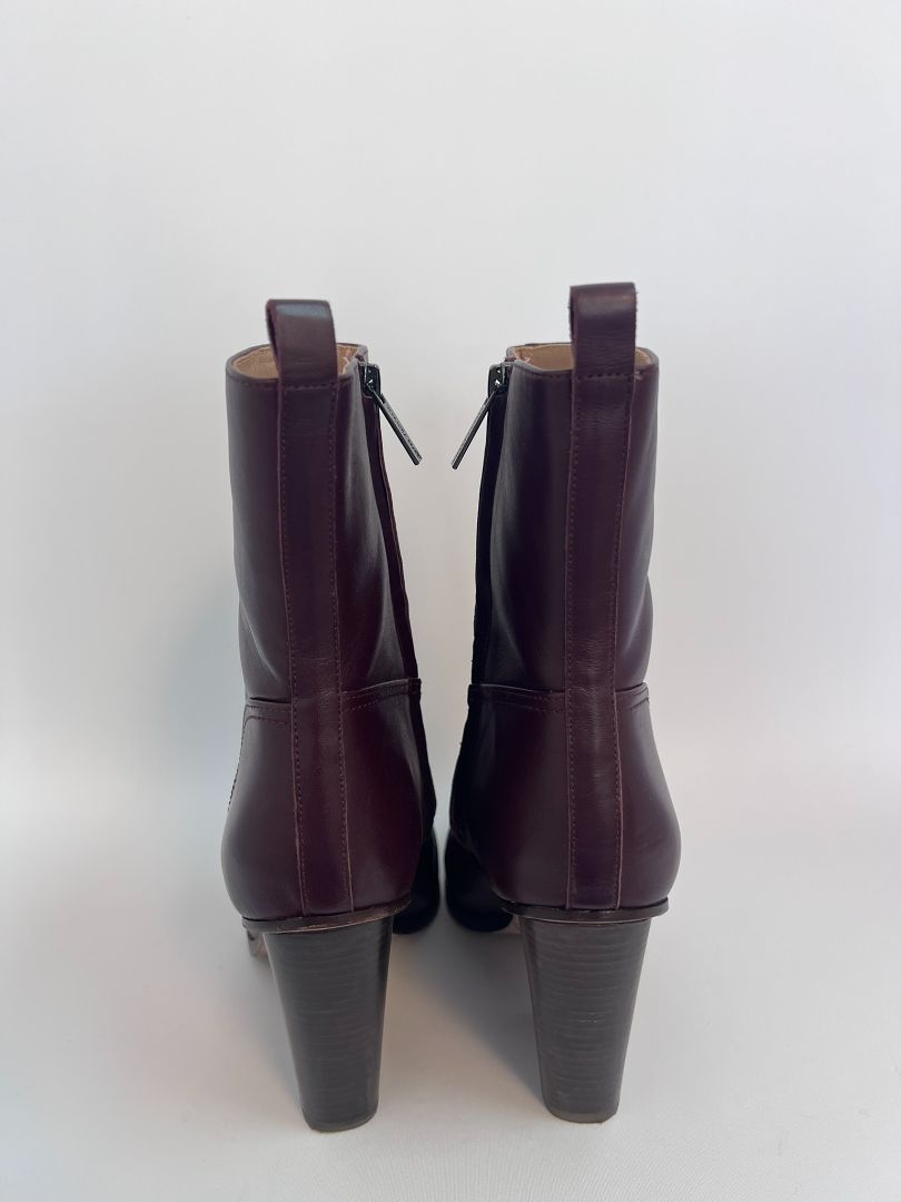 burgundy Veronica Beard faux leather heeled booties, 10M