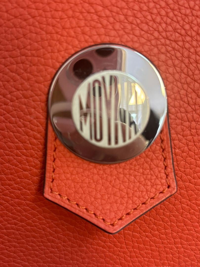 Elevate your luxury wardrobe with this pristine Moynat Voyage PM bag in vibrant flame‑orange Taurillon leather. Handcrafted in Paris, this structured top‑handle silhouette features the iconic round medallion clasp, impeccable edge painting, and a detachable cross‑body strap for seamless day-to-evening transition.