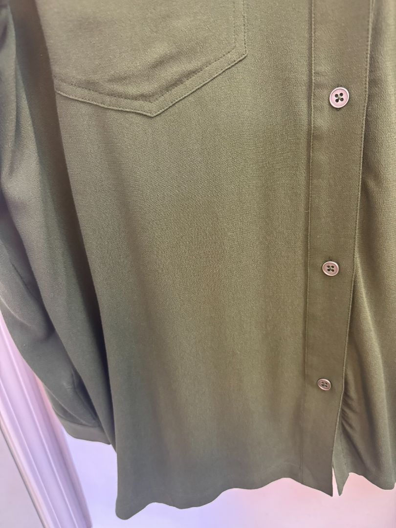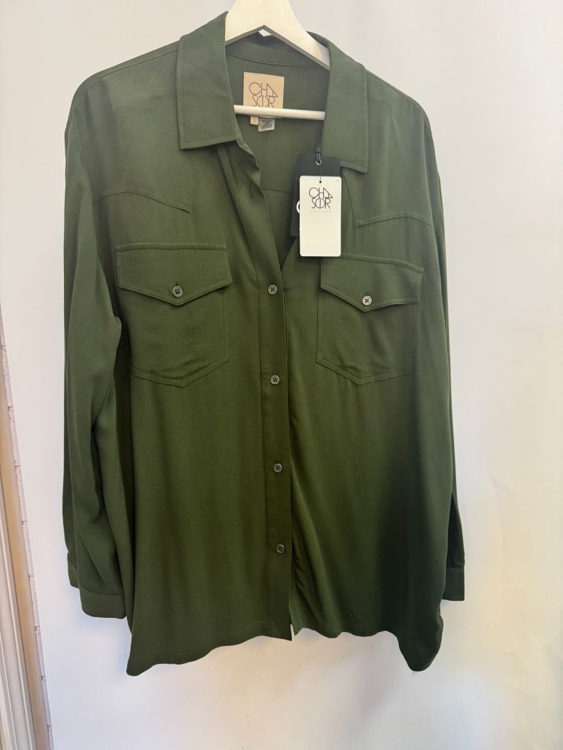Tags: Chaser Button Down, Utility Shirt, Olive Green Blouse, Chaser Top L, Relaxed Fit Shirt, Capsule Wardrobe Staple, Elevated Basics, New With Tags