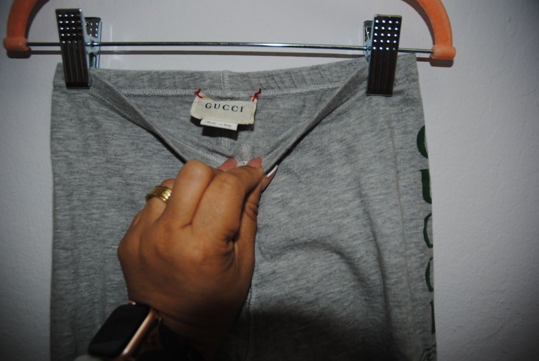 - Logo Detail: Green vertical “GUCCI” print down the leg with interlocking GG motif