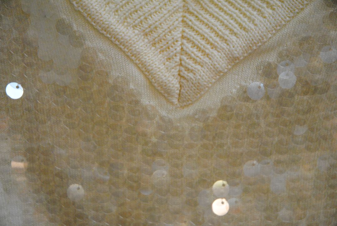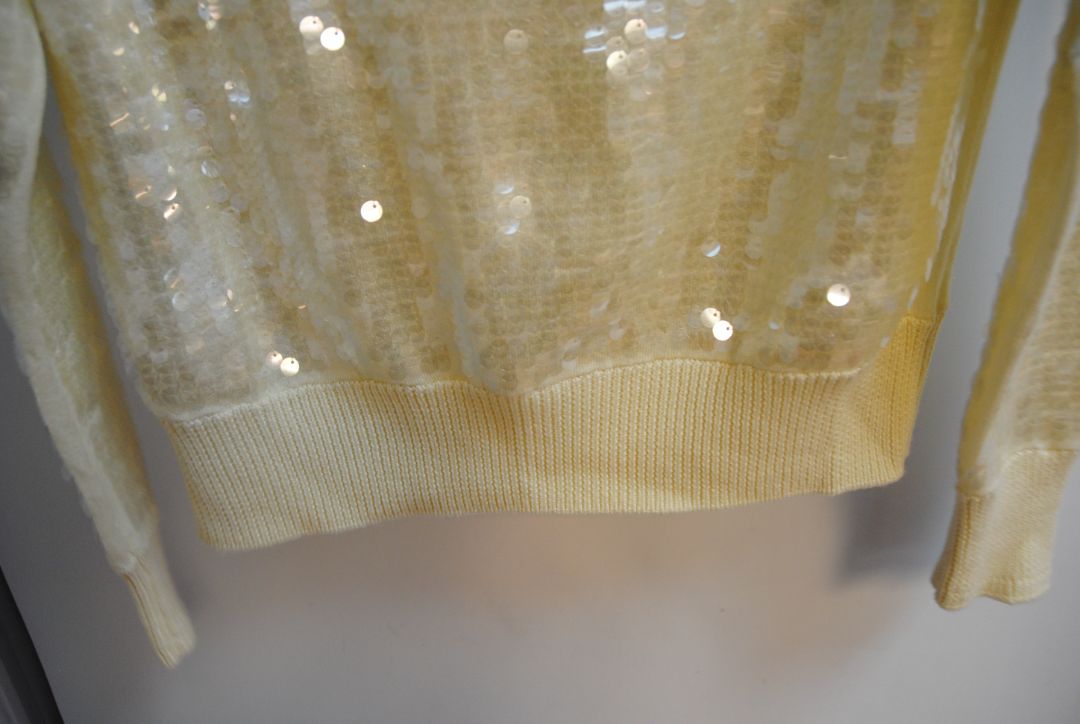 Milly sequin sweater, ivory shimmer pullover, glam knit top, luxury V-neck sweater, party-ready designer sweater, Milly holiday knitwear