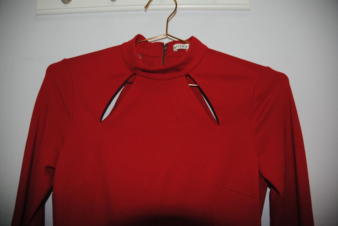 - Style: Red cut‑out detail long-sleeve dress (high neck and drop cutouts)
