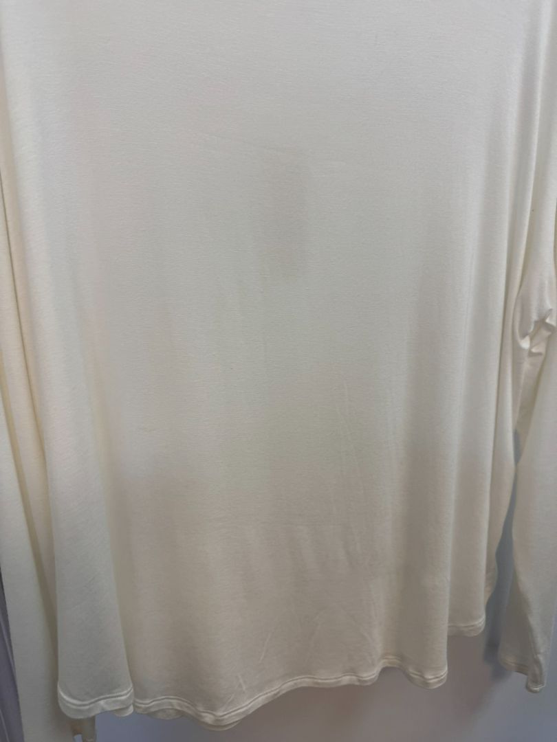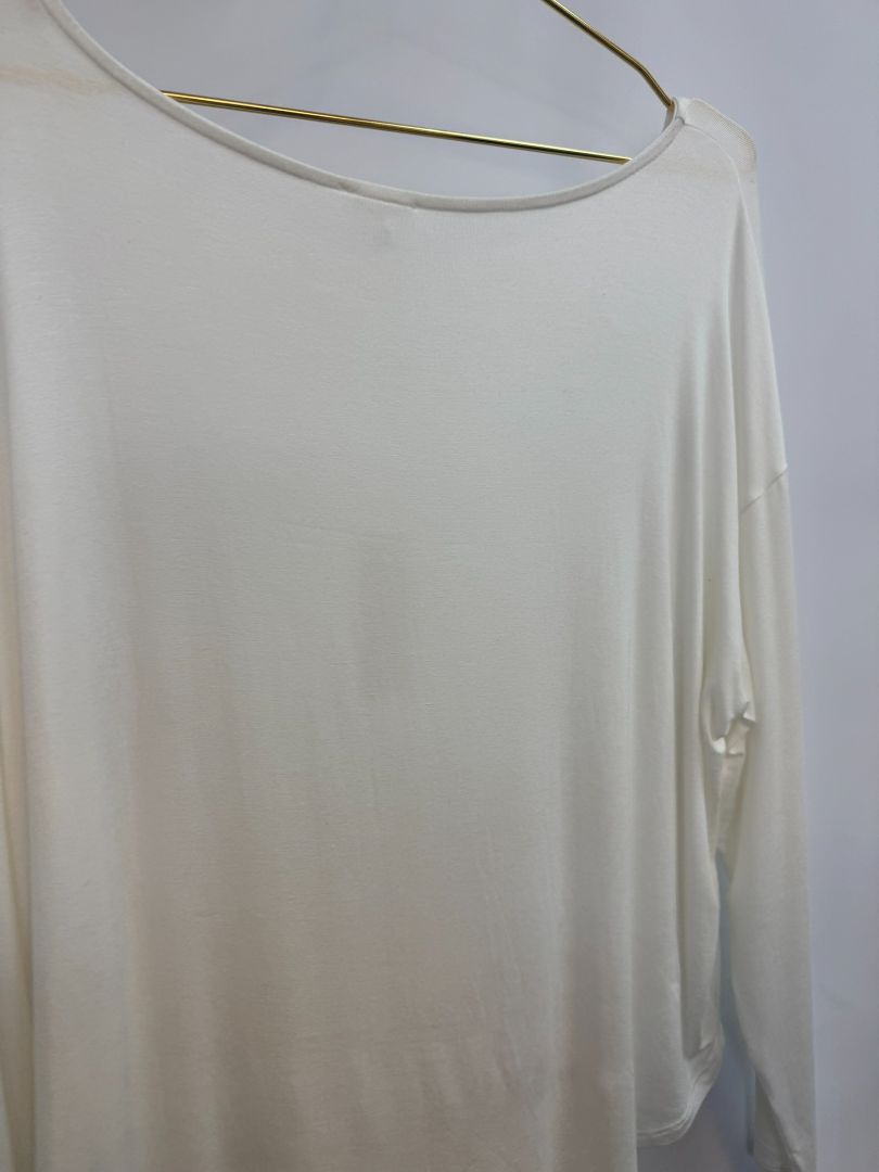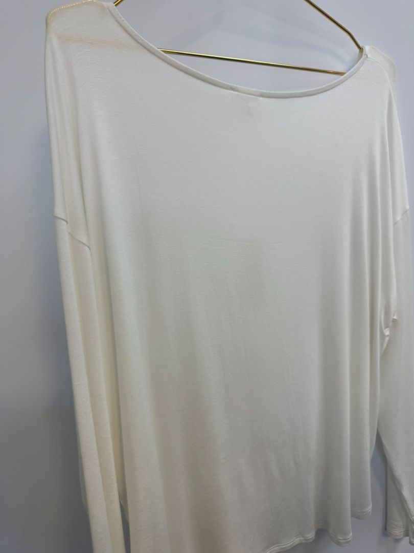 An elevated everyday essential, this long sleeve white top from Basics by Barbara & Company combines luxe comfort with minimalist design. Crafted from a buttery-soft, stretch-infused modal blend, it features a wide neckline, relaxed drape, and slightly extended hem—perfect for layering under jackets or worn loose with high-waisted denim. Style it tucked or untucked for year-round wear.
