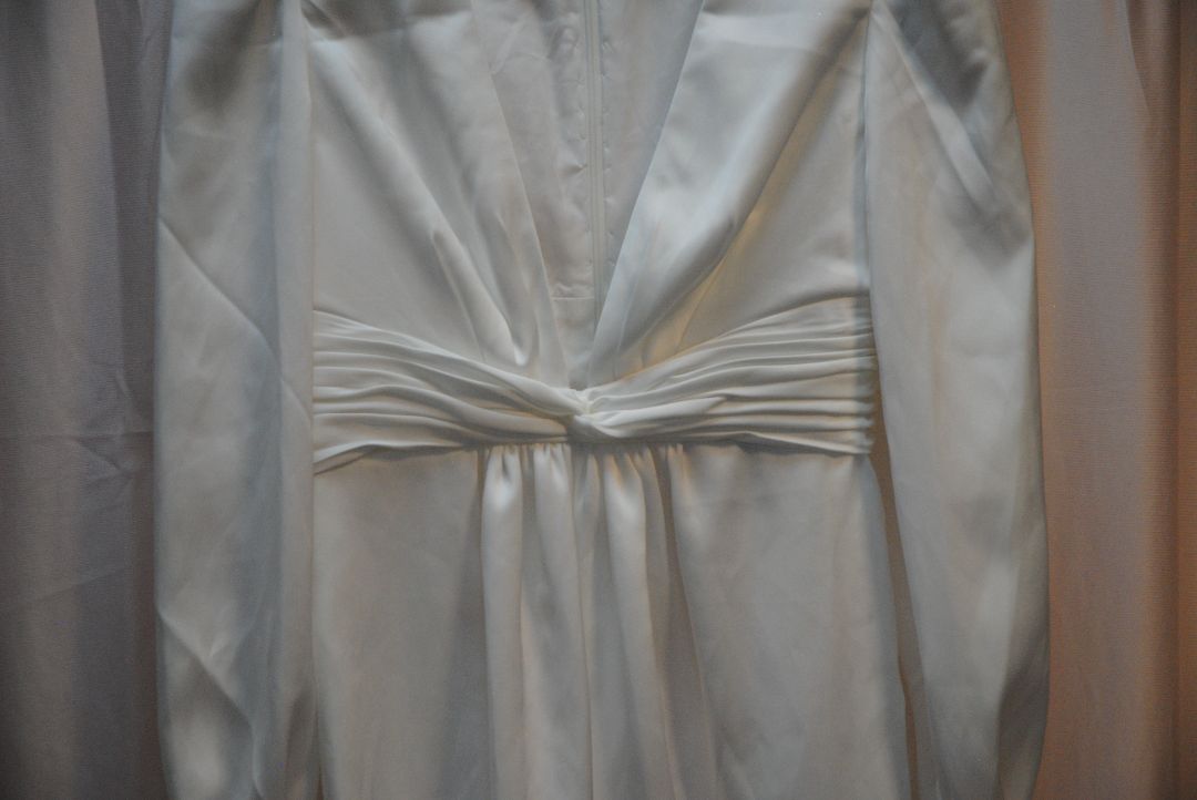 white Mac Duggal Front Twist Puff Sleeve Deep V Jumpsuit, 6