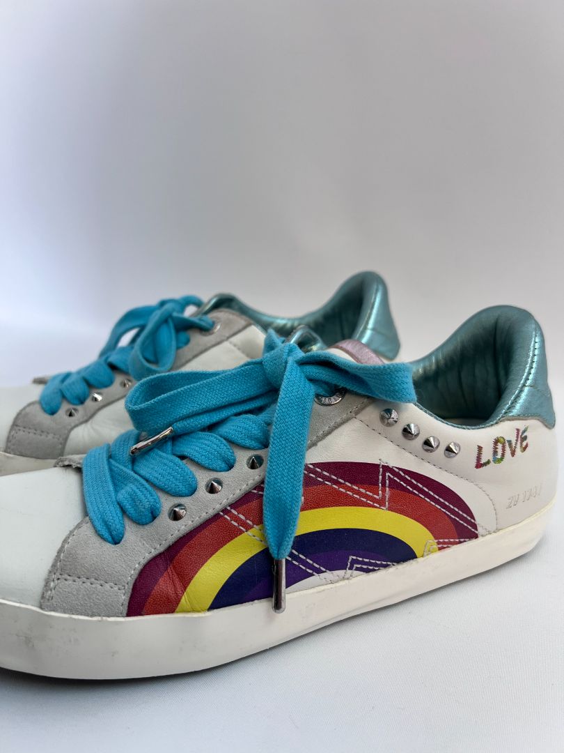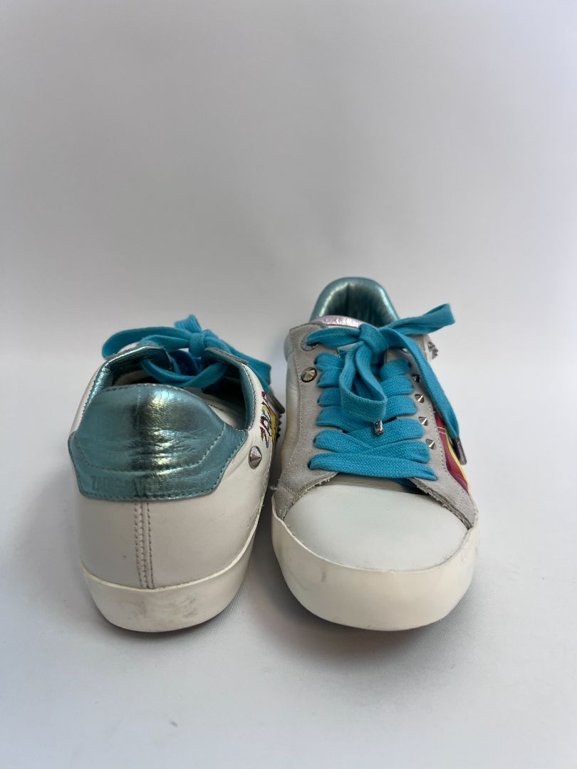 like new, clean with blue laces and silver divets, excellent condition, clean soles